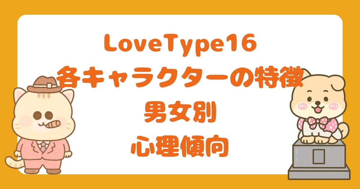 新着記事News Love Type 16 各キャラクターの特徴を男女別・心理傾向と共に紹介 2025.10.05 恋愛 恋愛 人気記事Popular Post エノッピ駆け出しブロガーProfile東京育ちのニート プロフィールを読むXInstagramYouTube
